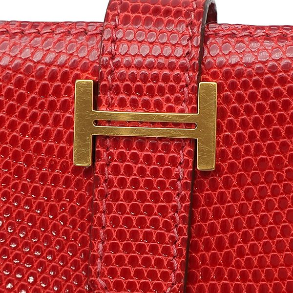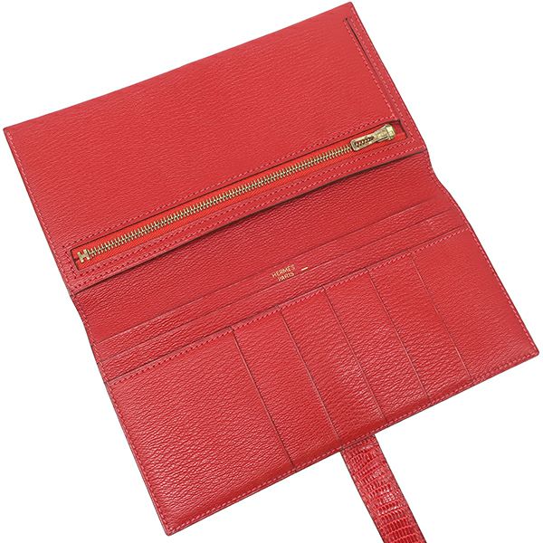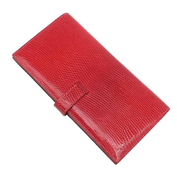 エルメス HERMES 長財布 ベアンクラシック リザード ルージュヴィフ ゴールド金具 赤 二つ折り財布 □G刻印 【中古】