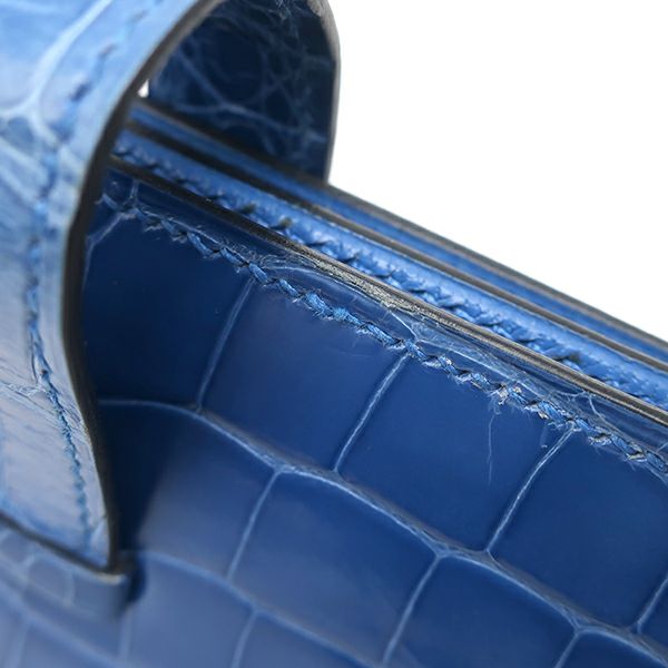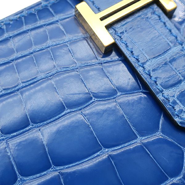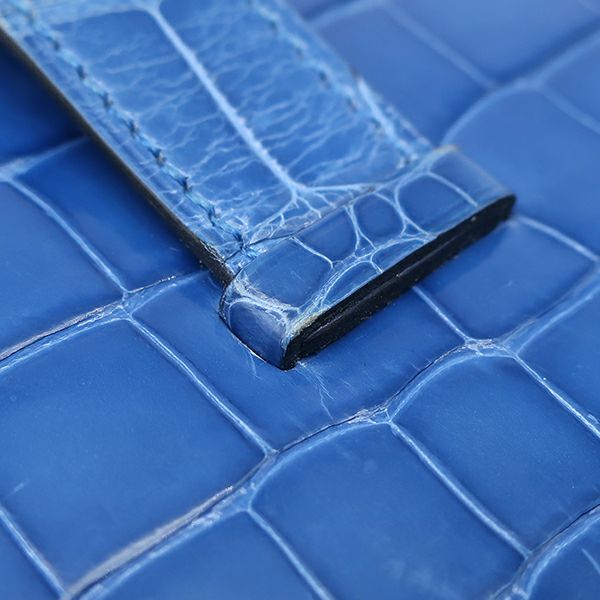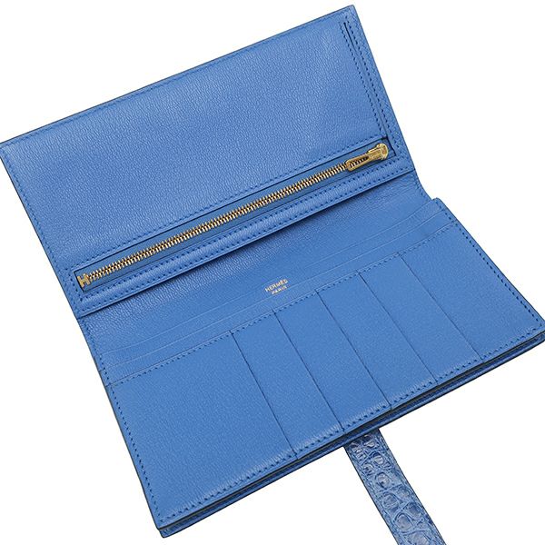 エルメス HERMES 長財布 ベアンスフレ アリゲーター ブルーゼリージュ ゴールド金具 青 クロコ 二つ折り財布 D刻印 【中古】