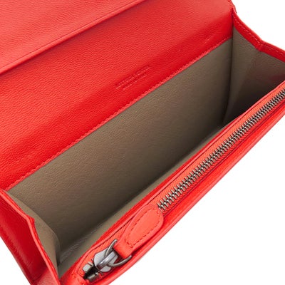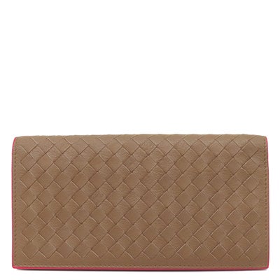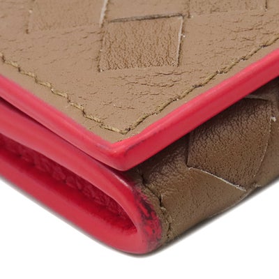 ボッテガヴェネタ BOTTEGA VENETA 長財布 イントレチャート コンチネンタル ウォレット レザー ブラウン×レッド ガンメタル金具 茶 二つ折り 【箱】 【中古】
