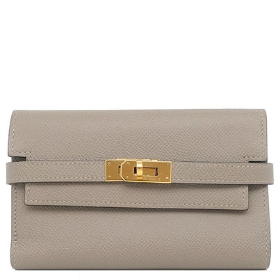 エルメス HERMES 長財布 ケリーウォレット ミディアム ヴォーエプソン グリアスファスト ゴールド金具 三つ折り A 【箱】 【中古】