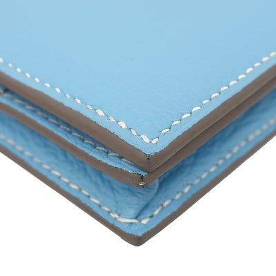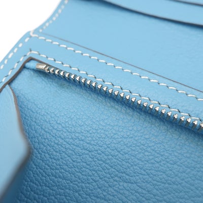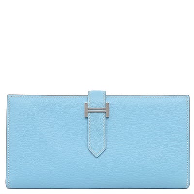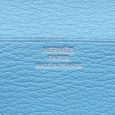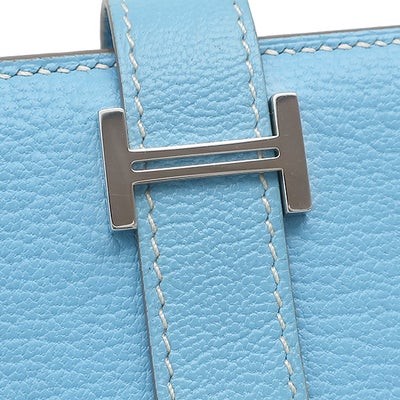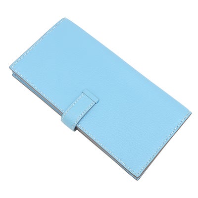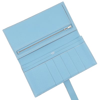 エルメス HERMES 長財布 ベアンスフレ シェーブル セレスト シルバー金具 二つ折り財布 □O 【中古】