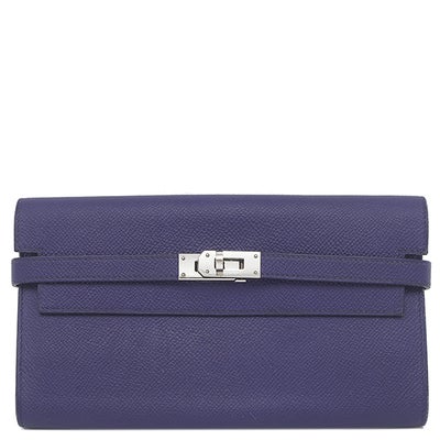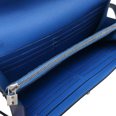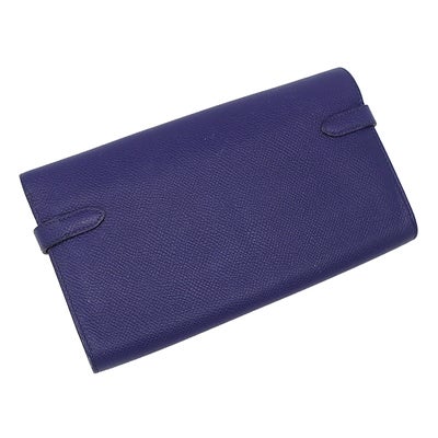 エルメス HERMES 長財布 ケリーウォレット ヴェルソ ヴォーエプソン ブルーアンクル×ブルーゼリージュ シルバー金具 紺 青 C 【中古】