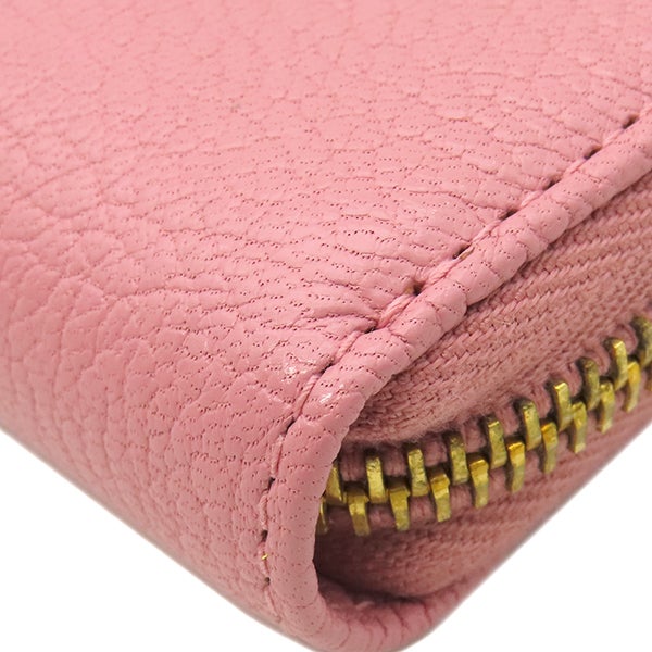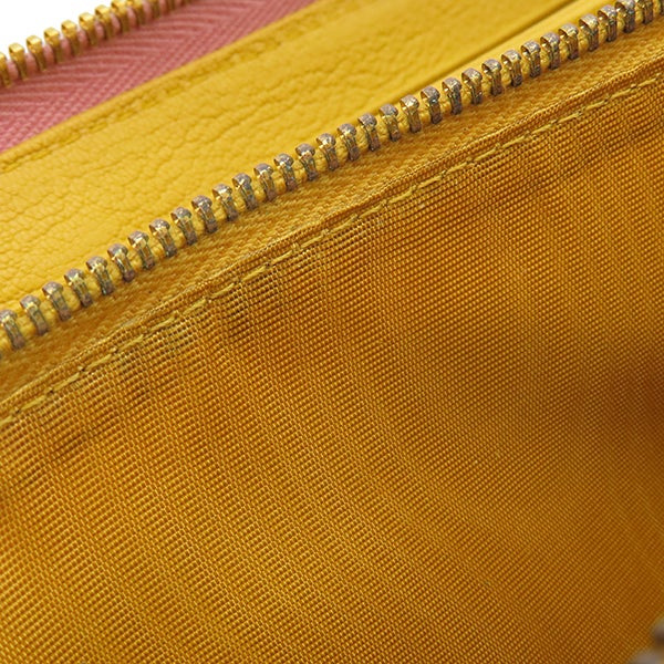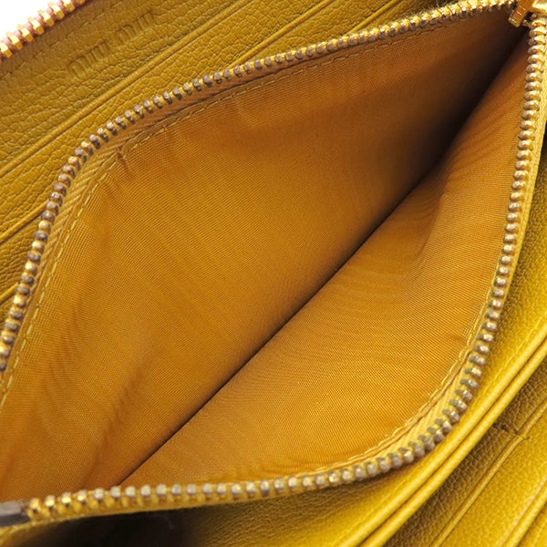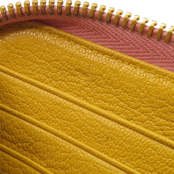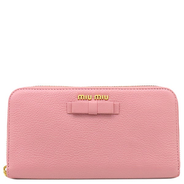 ミュウミュウ MIU MIU 長財布 リボン付き ラウンドファスナー ウォレット レザー ピンク×イエロー ゴールド金具 バイカラー 【中古】