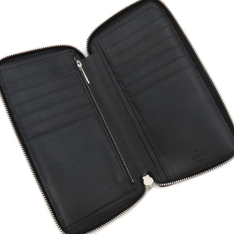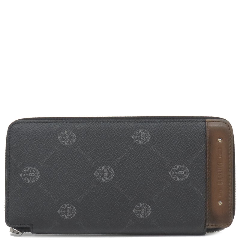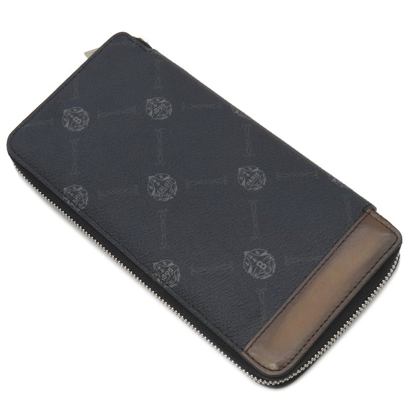ベルルッティ BERLUTI 長財布 イタウバ バーティカル ロング ジップ ウォレット キャンバス レザー ブラック×ブラウン シルバー金具 黒 ラウンドジップ 【保存袋】 【中古】