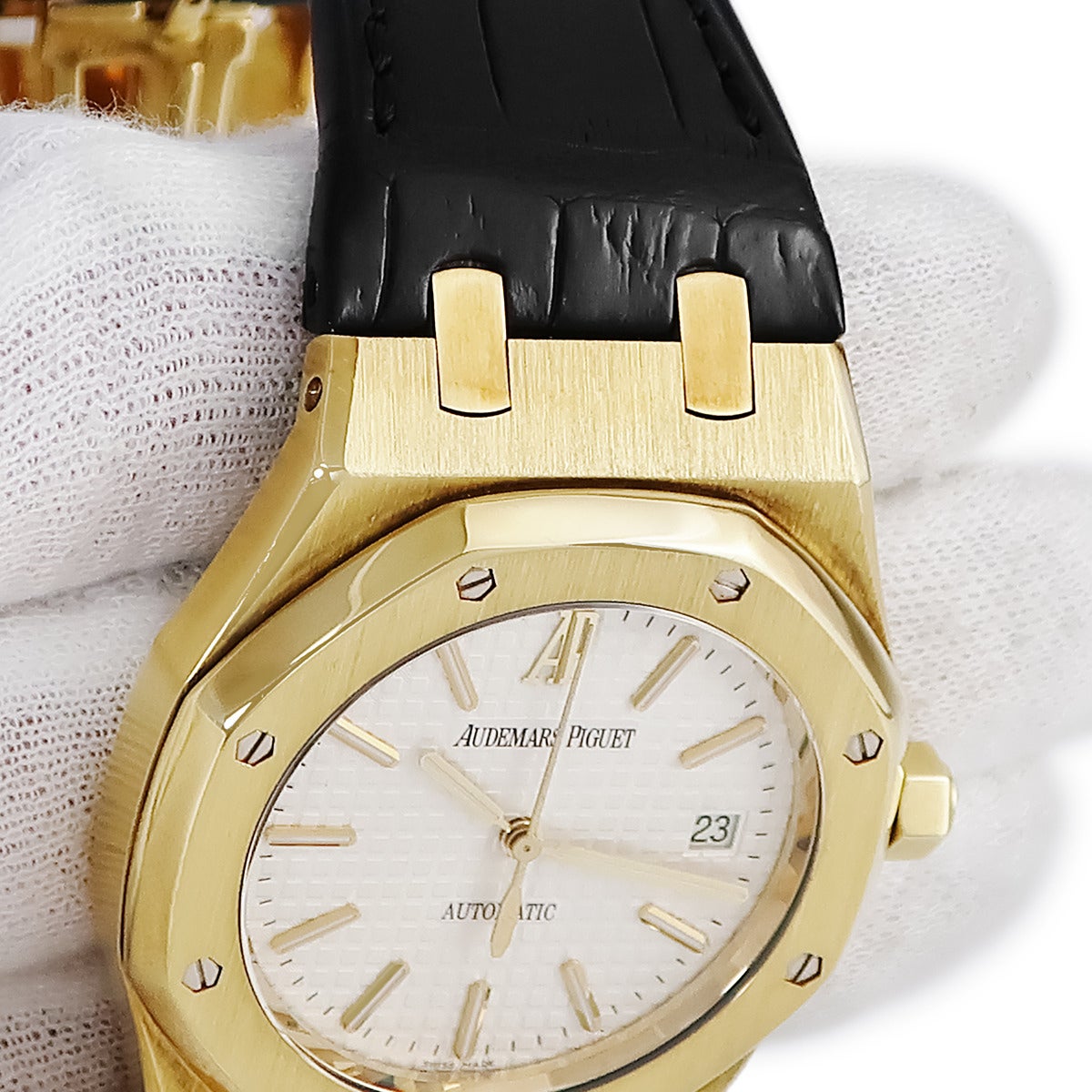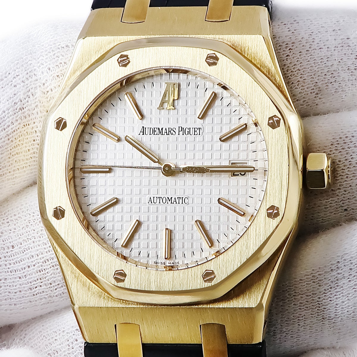 他の画像を見る オーデマピゲ AUDEMARS PIGUET ロイヤルオーク 15300BA.OO.D088CR.01 K18YG無垢 バー 八角形 デイト メンズ 腕時計自動巻き シルバー 【中古】 当店価格: ¥ 4,527,600 税込 在庫切れ 中古 詳細を見る