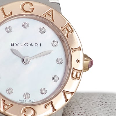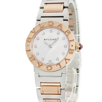 ブルガリ BVLGARI ブルガリブルガリ BBLP26SG BBL26WSPG K18PG×SS コンビ 純正12Pダイヤ シェル レディース 腕時計クオーツ ホワイト 【中古】