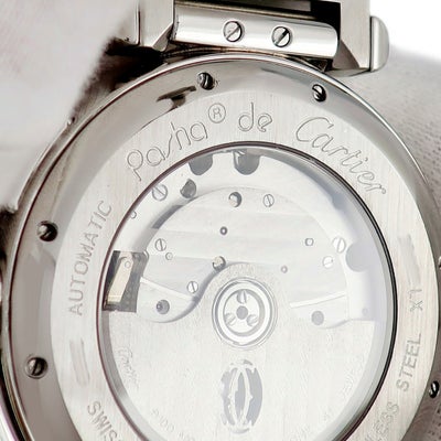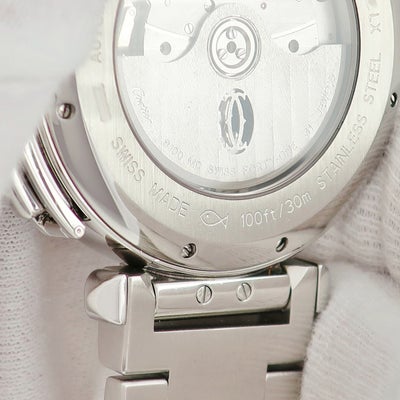カルティエ Cartier パシャ 42mm クロノグラフ W31085M7 青針 デイト アラビア バー スモールセコンド メンズ 腕時計自動巻き シルバー 【中古】