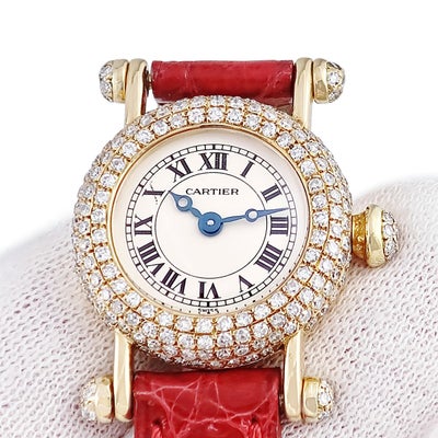 カルティエ Cartier ミニ ディアボロ W1511556 K18YG無垢 ダイヤ ラウンド 青針 ローマン レディース 腕時計クオーツ シルバー 【中古】