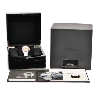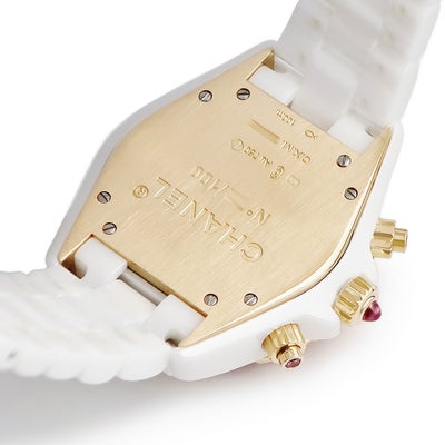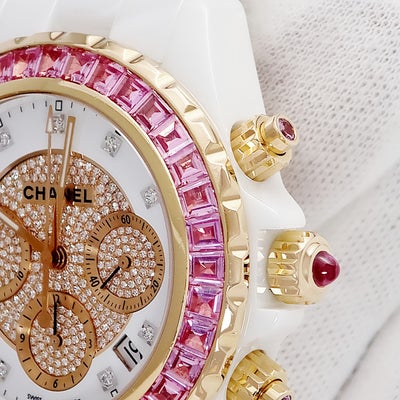 シャネル CHANEL J12 クロノグラフ H2161 K18PG×白セラミック コンビ 純正ダイヤ&サファイア メンズ 腕時計自動巻き ホワイト 【中古】