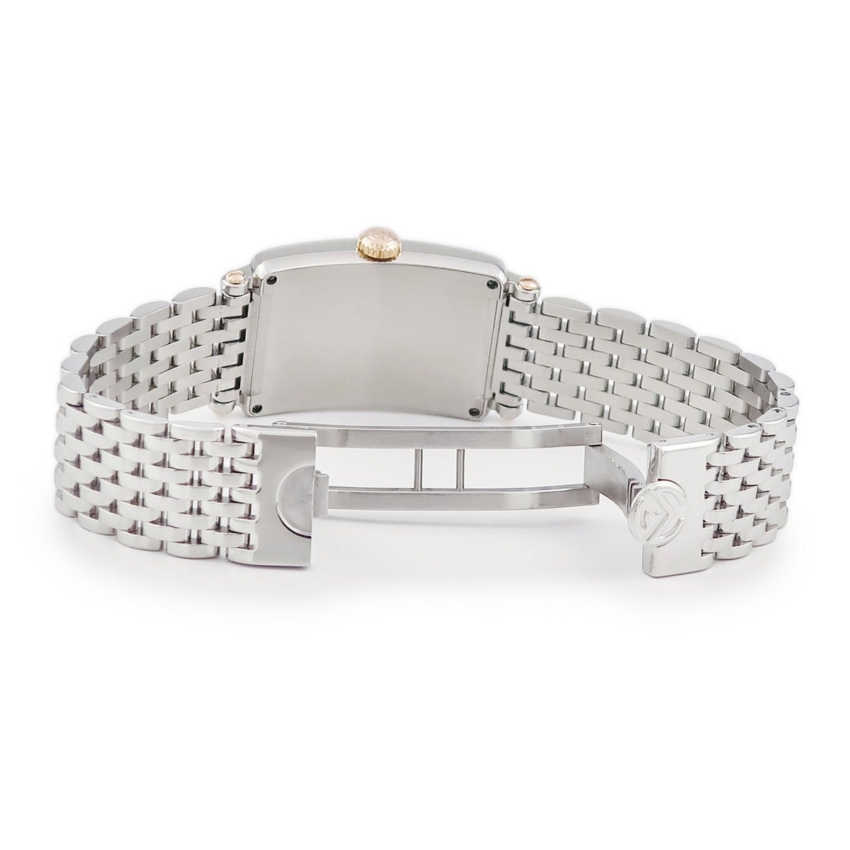 他の画像を見る フランクミュラー FRANCK MULLER ロングアイランド 1000QZD K18WG無垢 純正ダイヤ レリーフ ビザン数字 スクエア メンズ 腕時計クオーツ シルバー 【中古】 当店価格: ¥ 1,401,400 税込 在庫切れ 中古 詳細を見る