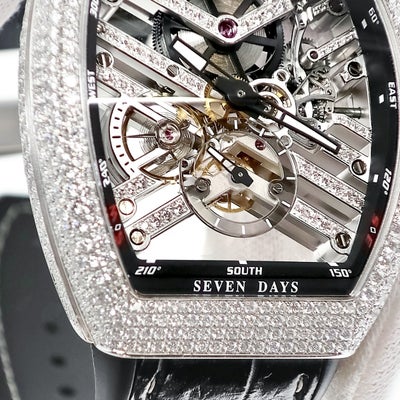 フランクミュラー FRANCK MULLER ヴァンガード 7デイズ V45 S6 SQT D MVT D OG NR OH済 純正ダイヤ スモールセコンド メンズ 腕時計手巻き シルバー 【中古】