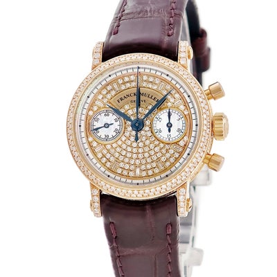 フランクミュラー FRANCK MULLER ラウンド クロノグラフ 2860 NA D K18PG無垢 純正ダイヤ パヴェ シェル レディース 腕時計手巻き ゴールド 【中古】