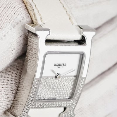 エルメス HERMES Hウォッチ・ドゥブルジュー HH1.234 純正ダイヤ パヴェ 白×シルバー H型 スクエア レディース 腕時計クオーツ ホワイト 【中古】