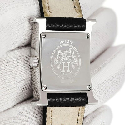 エルメス HERMES Hウォッチ PM HH1.210 H型 ホワイト ギヨシェ アラビア スクエア レディース 腕時計クオーツ ホワイト 【中古】