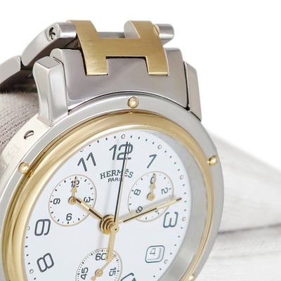 エルメス HERMES クリッパー クロノグラフ CL1.920 デイト ホワイト 白 スモールセコンド メンズ 腕時計クオーツ ホワイト 【中古】