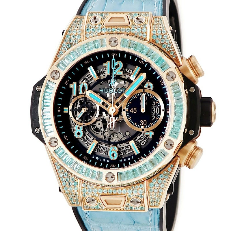 ウブロ HUBLOT ビッグバン ウニコ キングゴールド パライバ 411.OX.1189.LR.0919 K18KG無垢 希少石 青 メンズ 腕時計自動巻き ブラック 【中古】