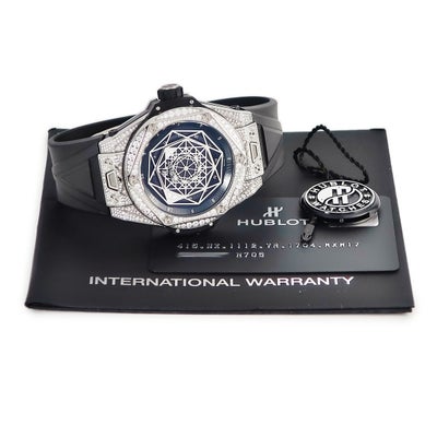 ウブロ HUBLOT ビッグバン ウニコ サンブルー チタニウム パヴェ 415.NX.1112.VR.1704.MXM17 純正ダイヤ 黒 メンズ 腕時計自動巻き ブラック 【中古】
