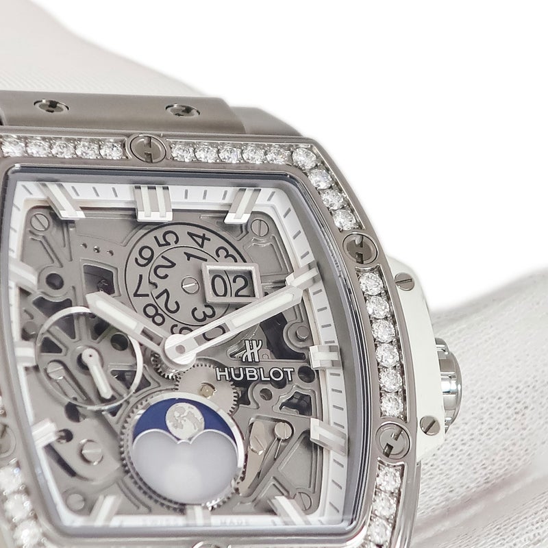 ウブロ HUBLOT スピリットオブビッグバン ムーンフェイズ チタニウム 647.NE.2070.RW.1204 純正ダイヤ メンズ 腕時計自動巻き シルバー 【中古】
