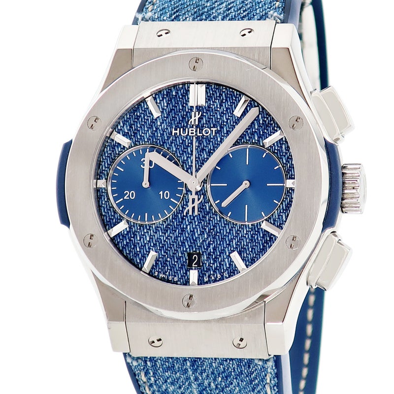 ウブロ HUBLOT クラシックフュージョン クロノグラフ ジーンズ 521.NX.2770.NR.JPN18 デニム デイト 限定 メンズ 腕時計自動巻き ブルー 【中古】