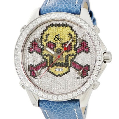 ジェイコブ JACOB&CO ファイブタイムゾーン スカル JC-SKULL6 純正ダイヤ 骸骨 GMT デイト ドクロ メンズ 腕時計クオーツ マルチカラー 【中古】