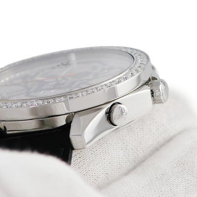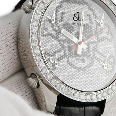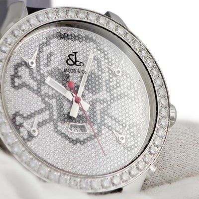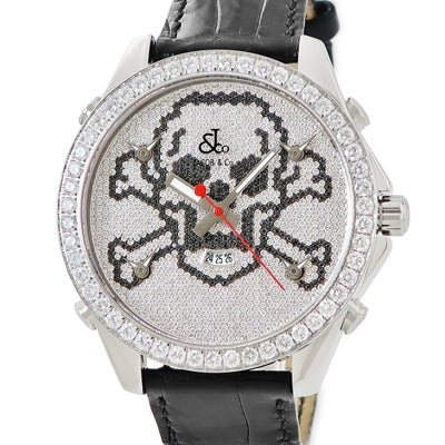 ジェイコブ JACOB&CO 5タイムゾーン 47mm スカル JC-SKULLD 純正全面ダイヤ 骸骨 ドクロ GMT メンズ 腕時計クオーツ シルバー 【中古】