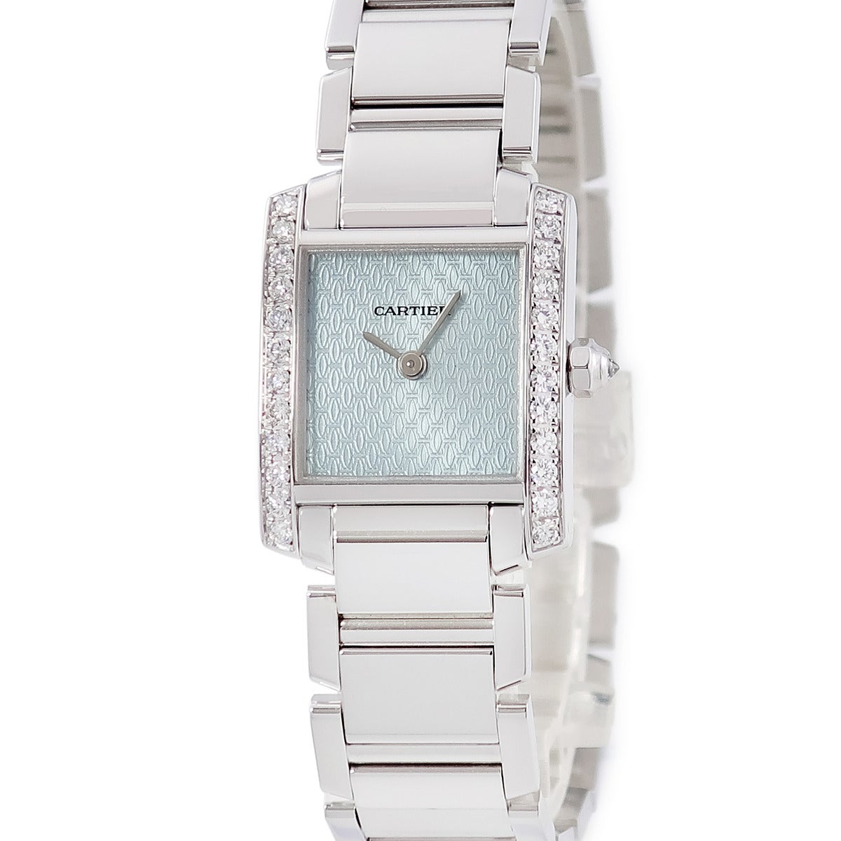 他の画像を見る カルティエ Cartier タンク フランセーズ SM WE1019S3 K18WG無垢 純正ダイヤ ライトブルー レディース 腕時計クオーツ ブルー 【中古】 当店価格: ¥ 2,069,760 税込 中古 カートに入れる