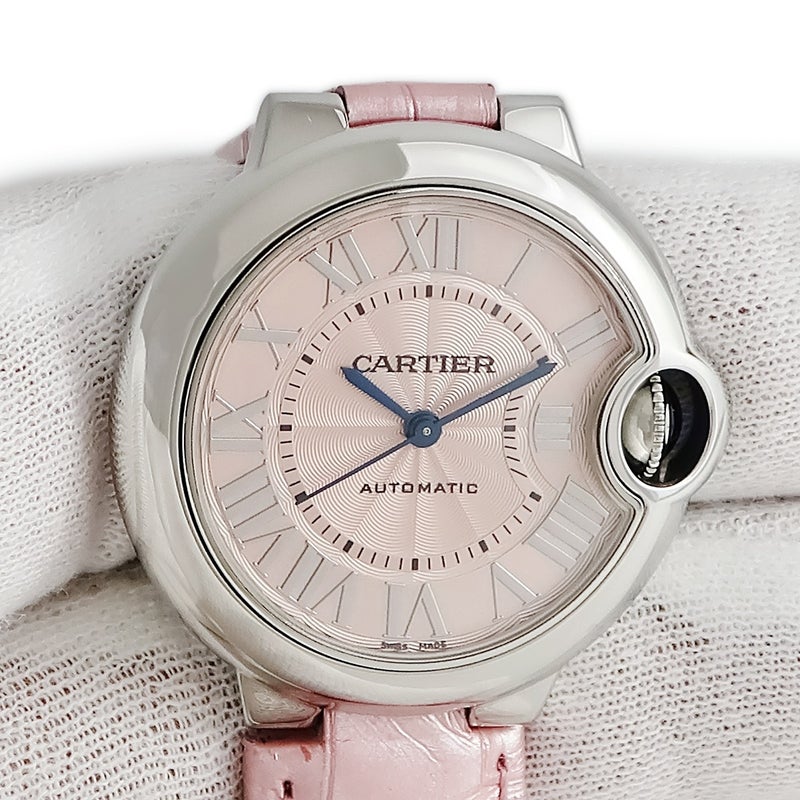 カルティエ Cartier バロンブルー33mm WSBB0002 ピンク ローマン ギヨシェ 青針 ブルースティール レディース 腕時計自動巻き ピンク 【中古】