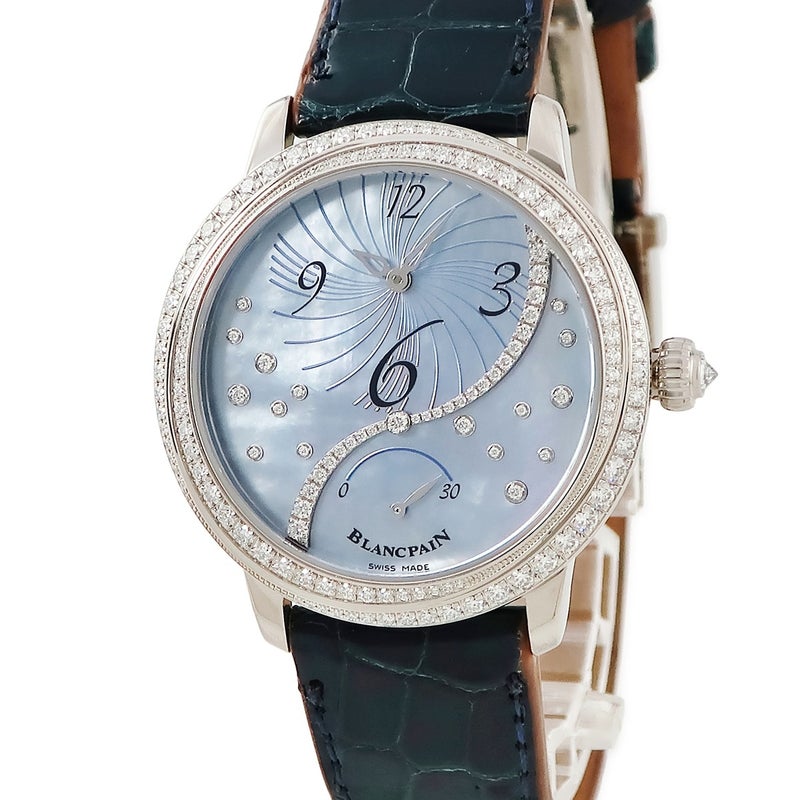 ブランパン BLANCPAIN レディバード Heure Decentree 3650A-3554L-58B K18WG無垢 純正ダイヤ オフセンター レディース 腕時計自動巻き ブルー 【中古】
