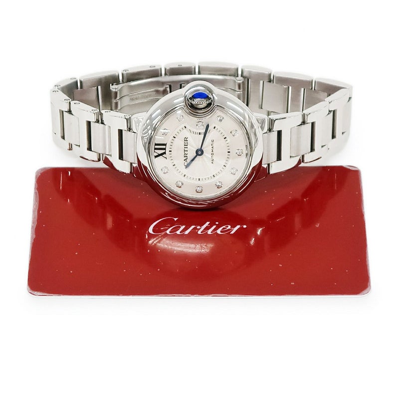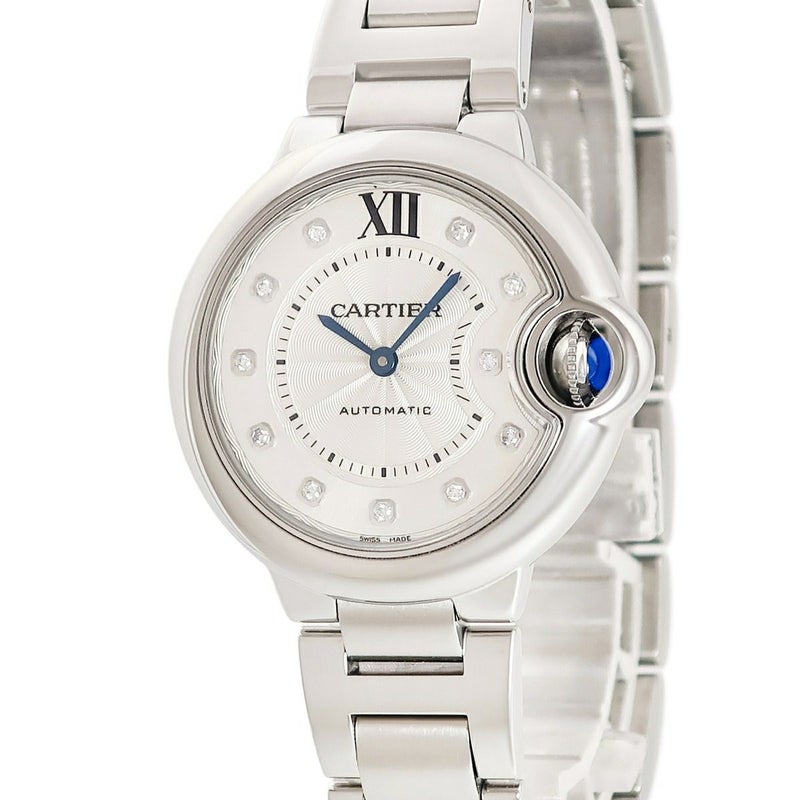 カルティエ Cartier バロンブルー ドゥ カルティエ 33mm W4BB0021 純正ダイヤ ギョウシェ 青針 メンズ レディース 腕時計自動巻き シルバー 【中古】