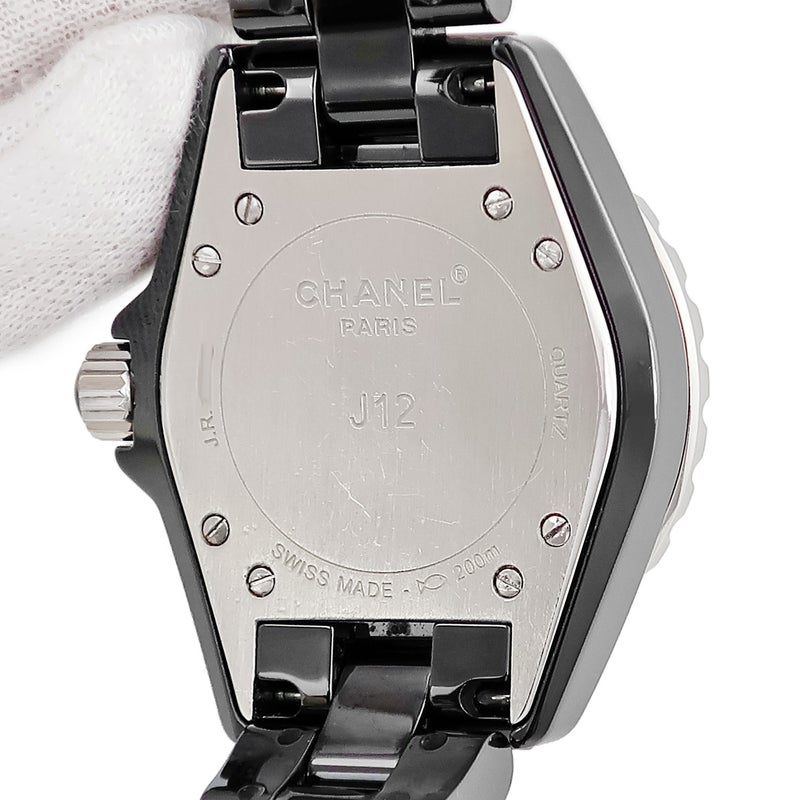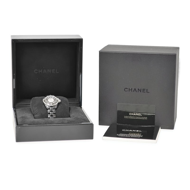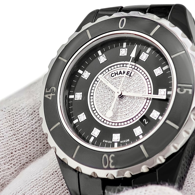 シャネル CHANEL J12 H2122 純正ダイヤ パヴェ 黒 ラウンド 回転ベゼル レディース 腕時計クオーツ ブラック 【中古】
