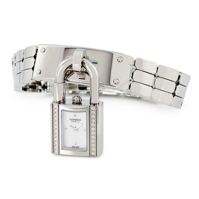 エルメス HERMES ケリーウォッチ ミニ KE4.130 新品同様 純正ダイヤ ホワイト 白 カデナ型 錠前 南京錠 レディース 腕時計クオーツ ホワイト 【中古】