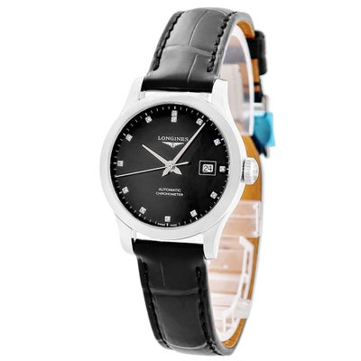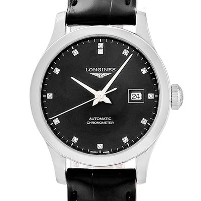 ロンジン LONGINES レコード L2.321.4.57.2 新品未使用 ダイヤ ブラック 黒 デイト レディース 腕時計自動巻き ブラック 【新品】