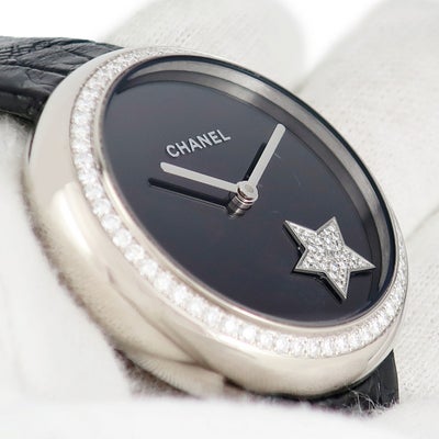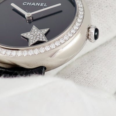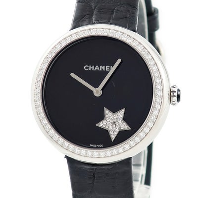 シャネル CHANEL マドモアゼル プリヴェ コメットモチーフ H2928 K18WG無垢 純正ダイヤ 黒 星 メンズ レディース 腕時計自動巻き ブラック 【中古】