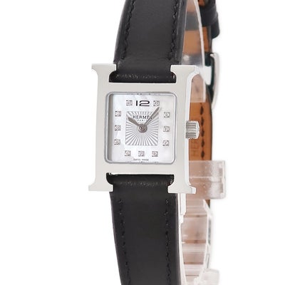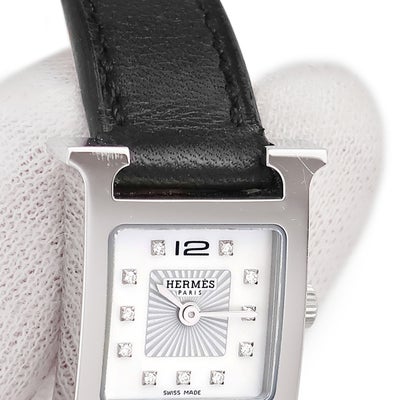 エルメス HERMES Hウォッチ ミニ TPM HH1.110 純正ダイヤ ホワイト シェル スクエア レディース 腕時計クオーツ ホワイト 【中古】
