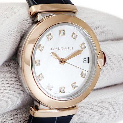 ブルガリ BVLGARI ルチェア LU33WSPGLD/11 102638 OH済 K18PG×SS コンビ 純正ダイヤ ホワイト シェル レディース 腕時計自動巻き ホワイト 【中古】