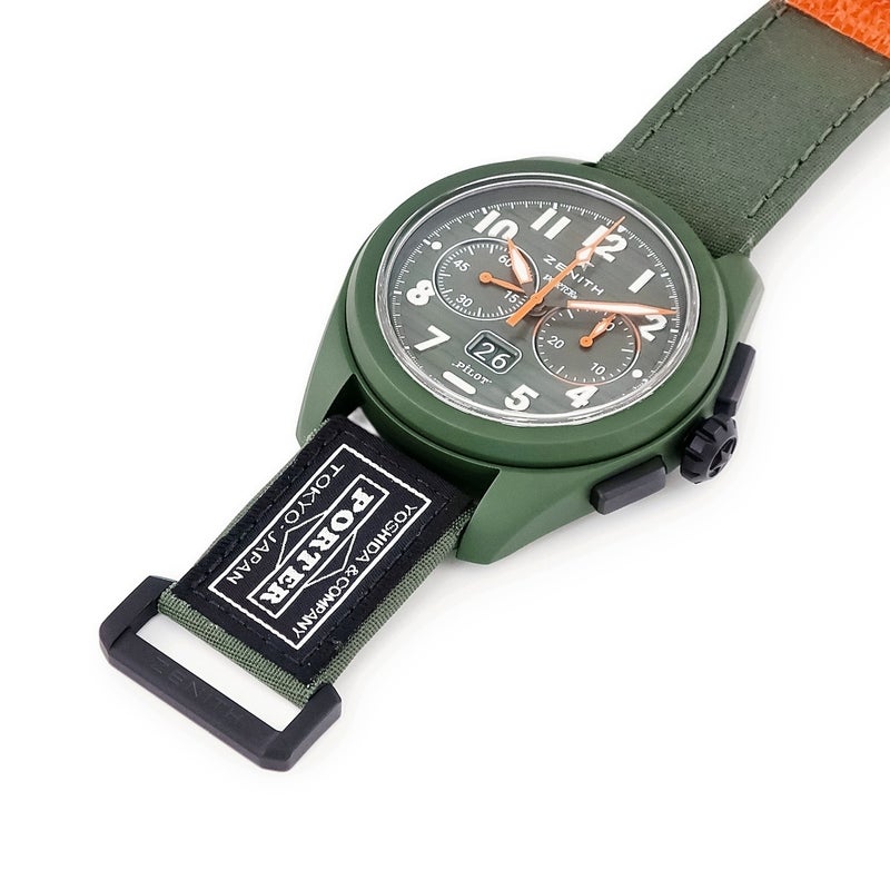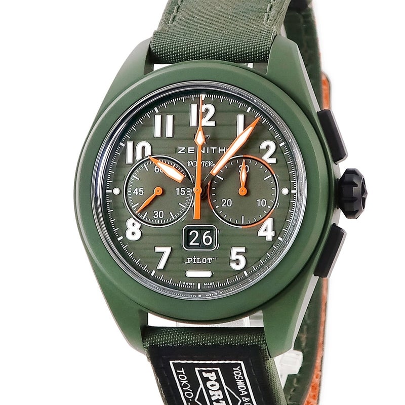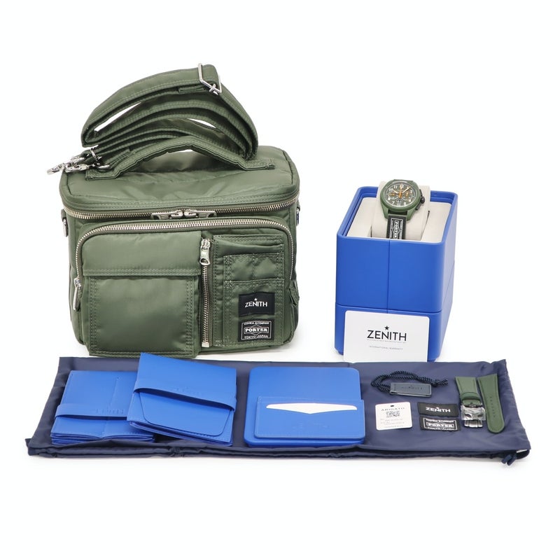 ゼニス ZENITH パイロット ビッグデイト フライバック ポーターエディション 49.4001.3652/63.I001 新品同様 メンズ 腕時計自動巻き カーキグリーン 【中古】