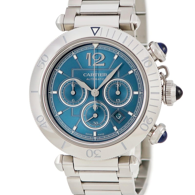カルティエ Cartier パシャ ドゥ カルティエ WSPA0039 ダークシアン クロノグラフ デイト 逆回転防止ベゼル メンズ 腕時計自動巻き ブルー 【中古】