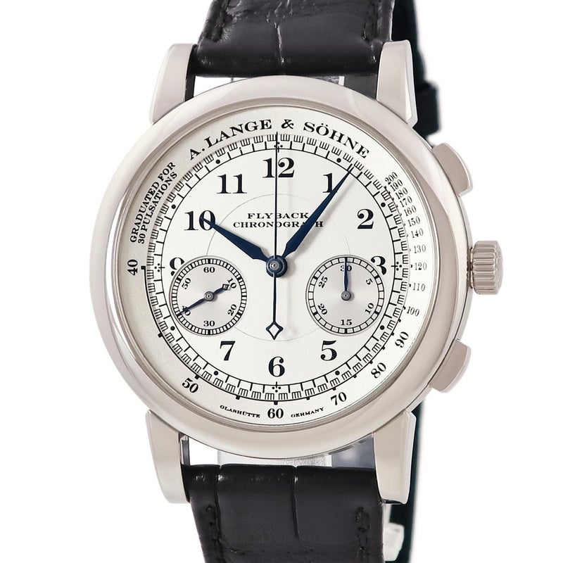 ランゲ&ゾーネ LANGE&SOHNE 1815 クロノグラフ 401.026 K18WG無垢 シルバー アラビア 青針 スモールセコンド メンズ 腕時計手巻き シルバー 【中古】