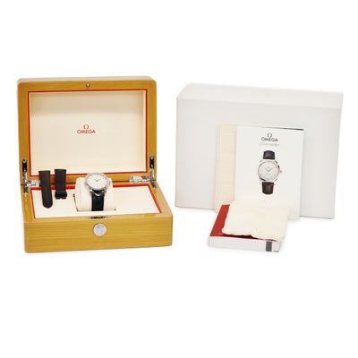限定証明書・取扱説明書・未使用純正替えチョウザメレザーベルト(紺/少し長め)・内外BOX(オメガ別機種用)