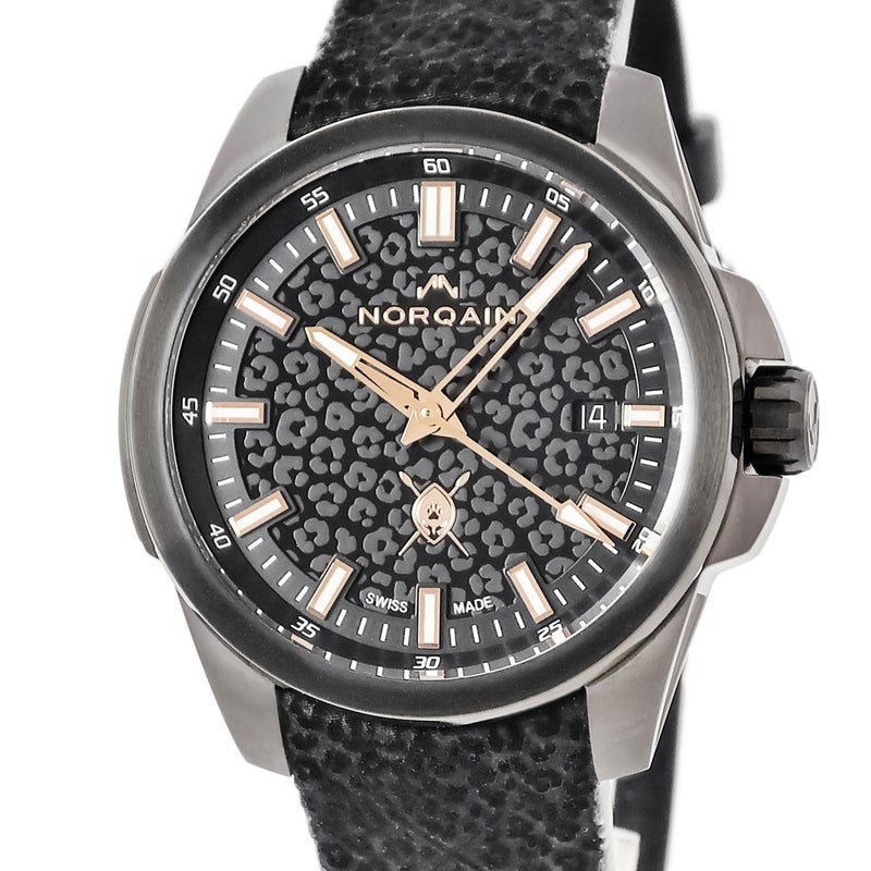 ノルケイン NORQAIN インディペンデンス ハクナミパカ NB3008B03A/LEO303/320BRLP.18B 新品同様 ヒョウ柄 メンズ 腕時計自動巻き ブラック 【中古】
