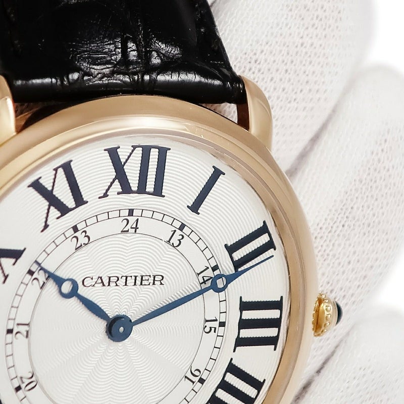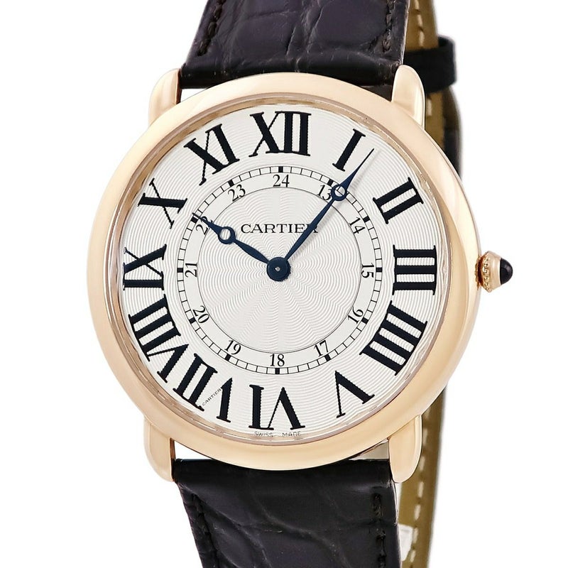 カルティエ Cartier ロンド ルイ カルティエ XL W6801004 K18PG無垢 ローマン 青針 ギョウシェ メンズ 腕時計手巻き シルバー 【中古】