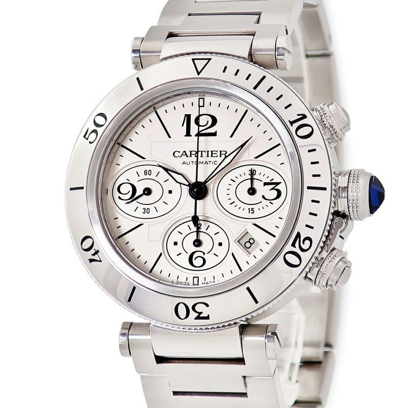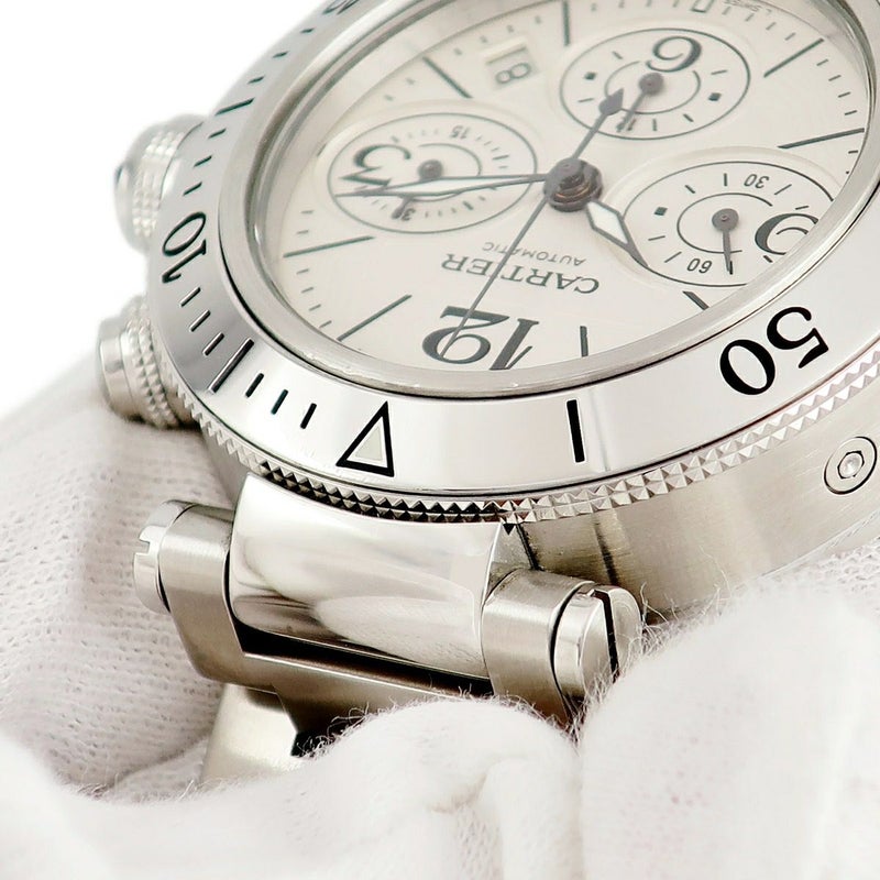 カルティエ Cartier パシャ シータイマー クロノグラフ W31089M7 シルバー デイト 逆回転防止ベゼル メンズ 腕時計自動巻き シルバー 【中古】