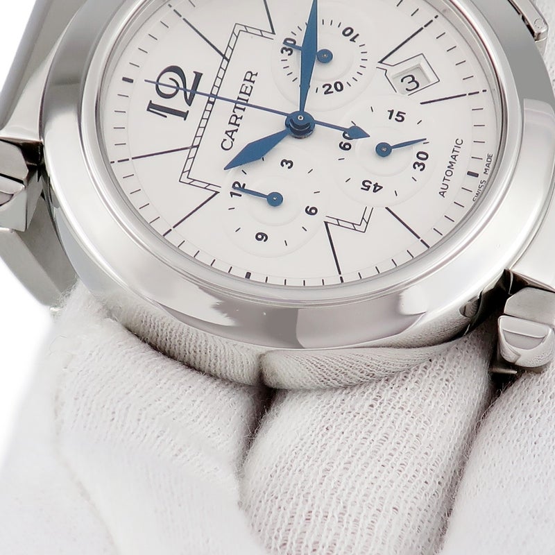 カルティエ Cartier パシャ 42mm クロノグラフ W31085M7 青針 デイト アラビア バー スモールセコンド メンズ 腕時計自動巻き シルバー 【中古】