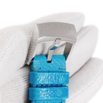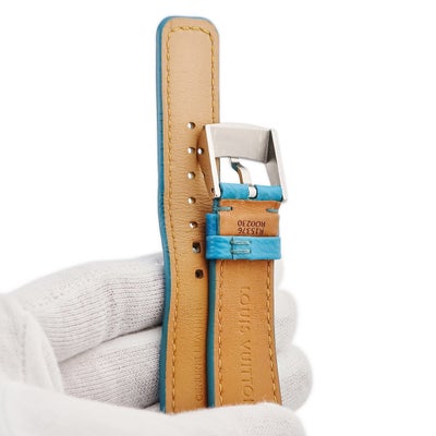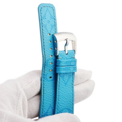 ルイヴィトン LOUIS VUITTON 腕時計パーツ 純正 タンブール用 モノグラム レザー ステンレススチール ライトブルー ワンタッチ 替え ベルト 純正SS製尾錠付き 21mm ブルー 水色 【中古】