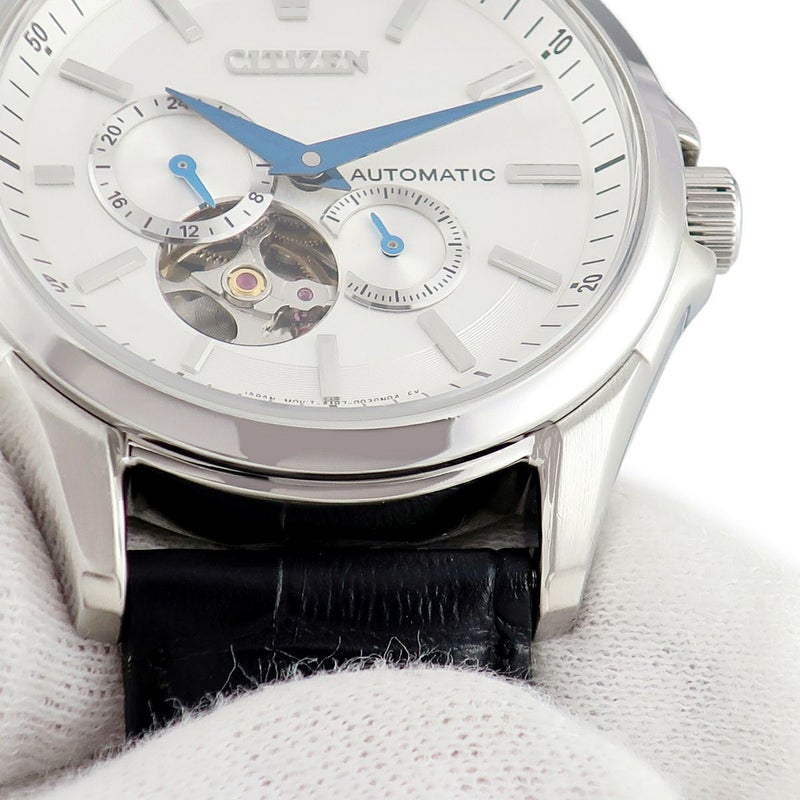 シチズン CITIZEN コレクション メカニカル オープンハート NP1011-08A OH済 スモールセコンド 青針 メンズ 腕時計自動巻き シルバー 【中古】