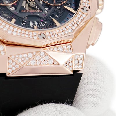 ウブロ HUBLOT アエロフュージョン オーリンスキー キングゴールド パヴェ 525.OX.0180.RX.1804.ORL19 メンズ 腕時計自動巻き ブラック 【中古】
