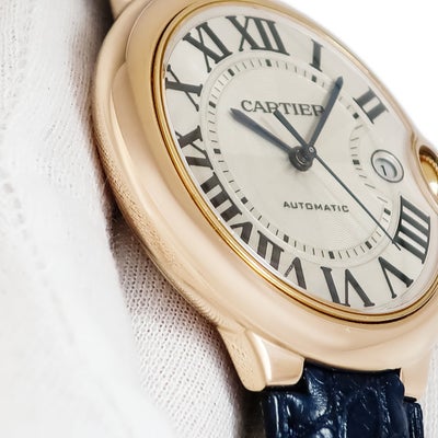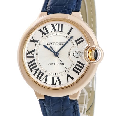 カルティエ Cartier バロンブルー ドゥ カルティエ W6900651 OH済 K18RG無垢 ギョウシェ 青針 デイト メンズ 腕時計自動巻き シルバー 【中古】