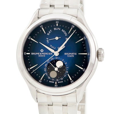 ボーム&メルシエ BAUME&MERCIER クリフトン ボーマティック M0A10725 新品同様 デイデイト ムーンフェイズ メンズ 腕時計自動巻き ブルー 【中古】