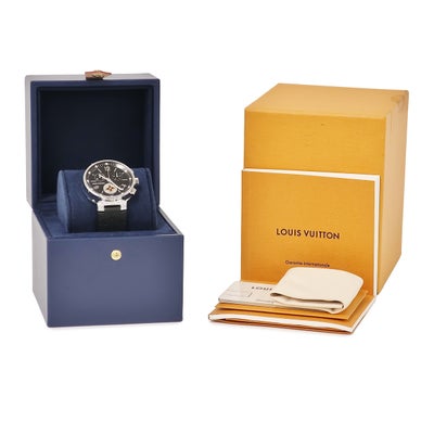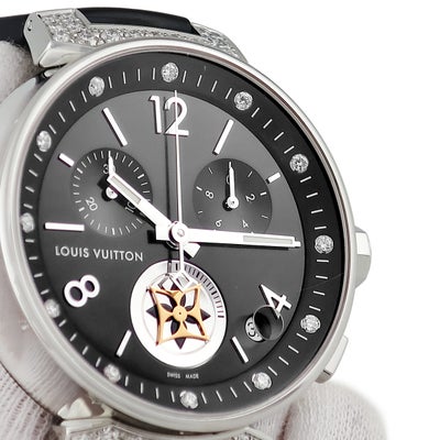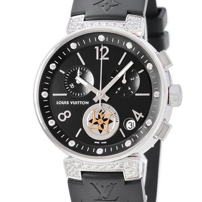 ルイヴィトン LOUIS VUITTON タンブール ムーンスター GM Q8E00Z 純正ダイヤ ブラック クロノグラフ デイト メンズ 腕時計クオーツ ブラック 【中古】