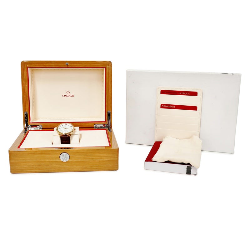 オメガ OMEGA デ ヴィル プレステージ CO-AXIAL 50周年記念 424.53.40.20.04.004 K18RG無垢 白 デイト メンズ 腕時計自動巻き ホワイト 【中古】